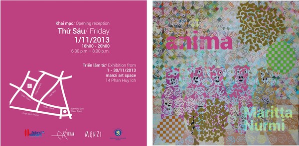 Art Vietnam Gallery, Manzi Art Space and the Embassy of Finland is pleased to present the new works of Maritta Nurmi, in her upcoming solo exhibition "Anima" opening at Manzi Art Space, November 1, 2013 in celebration of the 40 year anniversary of the diplomatic relationship between Finland and Vietnam.